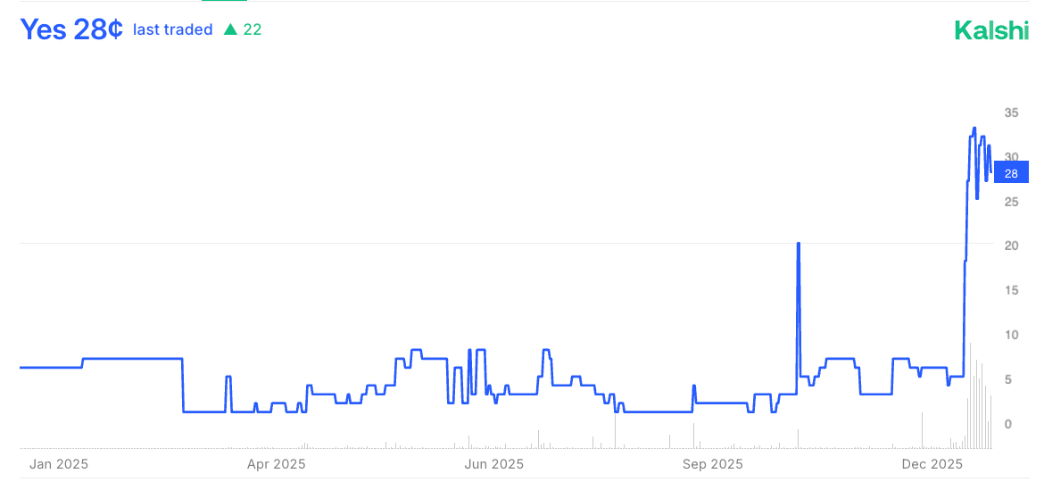 Traders also believe that Homeland Security Secretary Kristi Noem could be the first cabinet member to leave the Trump Administration (Bongino and Patel are part of the administration, but are not cabinet members). She’s currently trading at 25 cents, ahead of Defense Secretary Pete Hegseth at 16 cents.