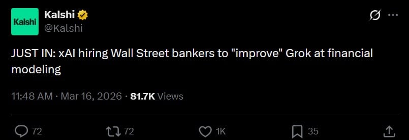 xAI is reportedly hiring Wall Street bankers to improve Grok’s financial modeling skills.